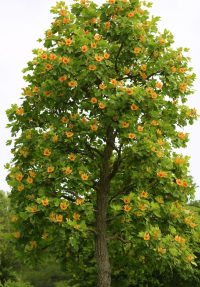 درخت لاله باشکوهترین درخت جنگلهای آمریکا در جوانی تنهای صاف دارد و اغلب تا ارتفاع بسیار بالا هیچ شاخهی جانبی ندارد اما وقتی درخت بالغ میشود، پوست آن زبر و گره گره شده و شاخههای کوتاهی روی تنهاش میروید.